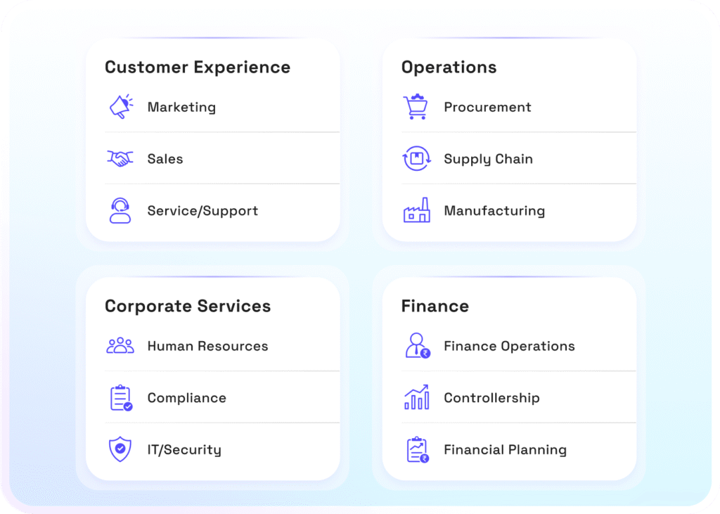 Agentic AI solutions spanning the enterprise value chain (Customer Experience, Operations, Finance, Compliance, HR); Proven and deployed at leading global companies.